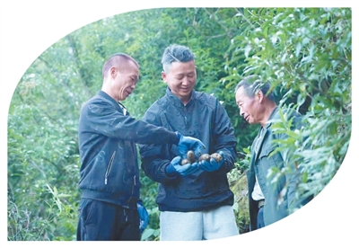 北海镇打苴村党员干部察看林下天麻采收情况。杨治文摄